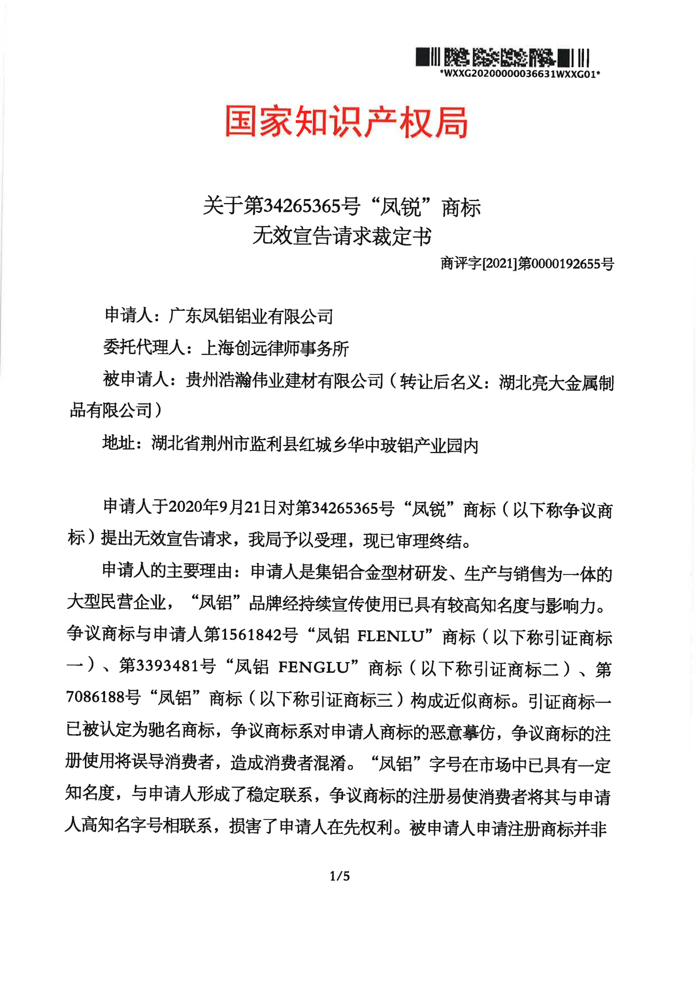 乌兰察布辉知队 | 国家知识产权局:“凤锐”商标无效